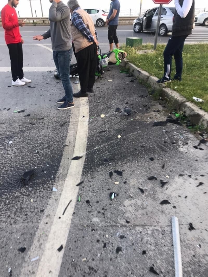 Çarpışmanın şiddetiyle motosikletin üzerinden fırlayan sürücü Özdemir, havada taklalar attıktan sonra yaklaşık 5 metre savrularak beton refüje düştü.