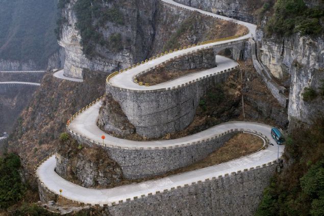 Tianmen dağ yoluNerede: ÇinDönüş sayısı: 99 Risk: Fotoğrafa dikkatlice baktınız mı?Adeta bir hayal alemini andıran Tianmen Dağı Ulusal Parkı’nda yer alan yolda tam 99 adet dönüş var ve bu 11 kilometrelik yolun sonunda 1.300 metre yüksekliğe ulaşıyorsunuz.