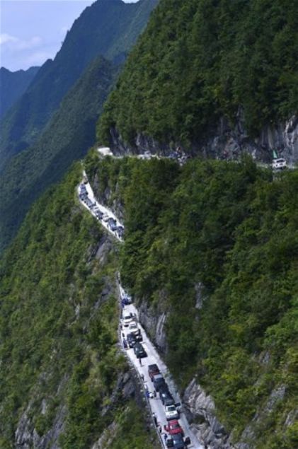 Hubei eyaletinde bulunan Enshi Kanyonu'nda bulunda yol görenleri şaşırtıyor.