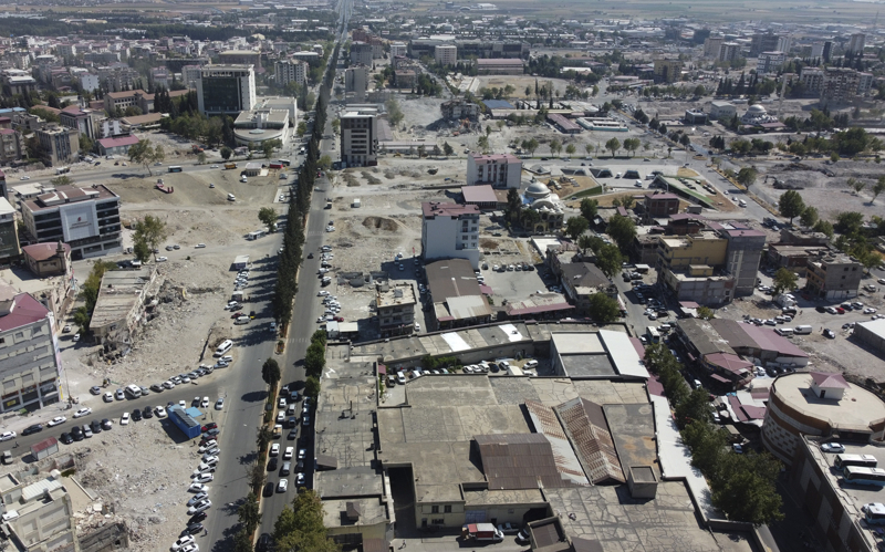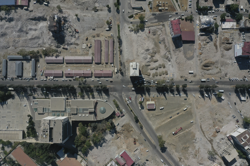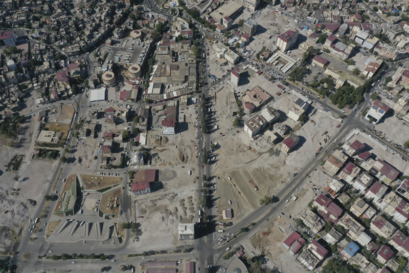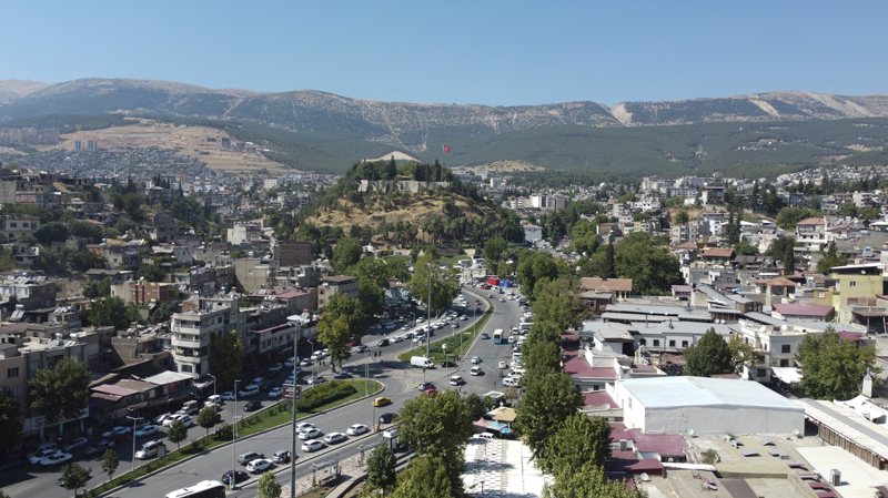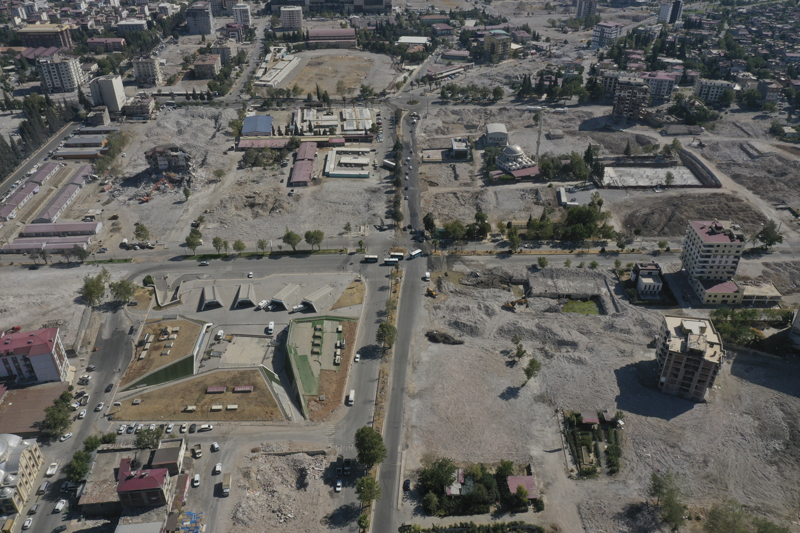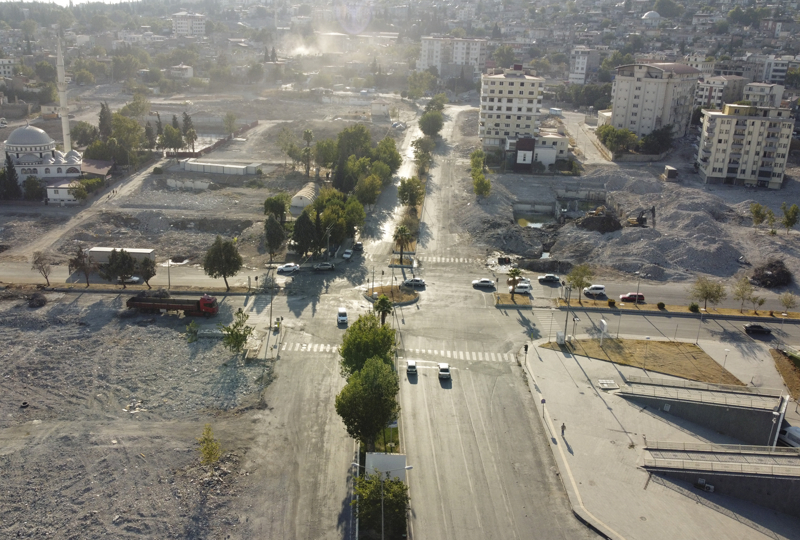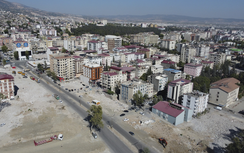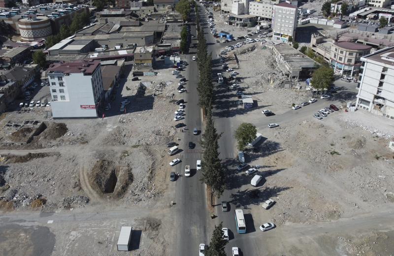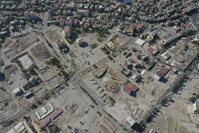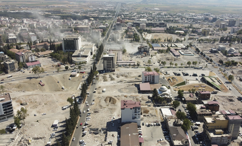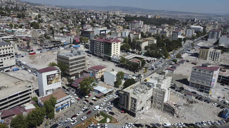 Çalışmaların aralıksız sürdüğü yerlerden biri olan Kahramanmaraş kent merkezi, drone ile görüntülendi.
