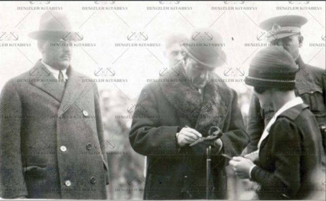 Atatürk, İzmir'de bir öğrenciye imza verirken...