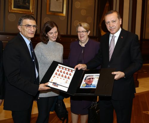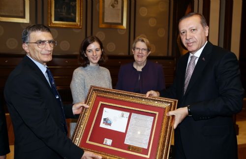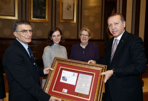 - Genelkurmay Başkanına Nobel madalyasını ve sertifikayı teslim ettim. Genelkurmay Başkanlığında saklanacak. 19 Mayıs'ta Anıtkabir'e koyacağız. Bu Atatürk'ün ve cumhuriyetin madalyasıdır. - Cumhuriyet bir mucizedir. Okullar yarattı, bize özgüven verdi. Bana öyle eğitim verdiler ki ABD'lilerden daha iyi eğitim verdi. Bana memleketim Savur olsun Kars olsun büyüdüğüm yerlerde çok güzel eğitim verdi. Ben memleketime çok minnettarım.