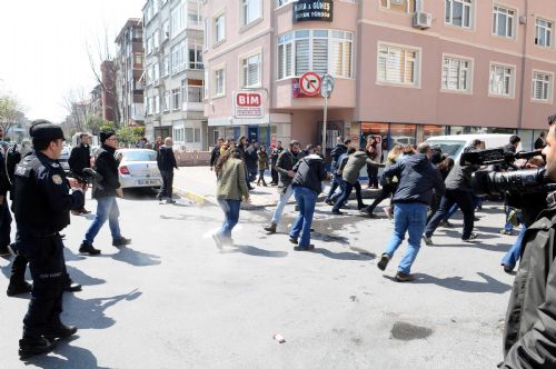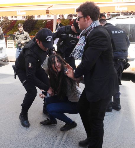 Polis müdahalelere rağmen dağılmayan grup üyelerinden bazılarını gözaltına aldı.