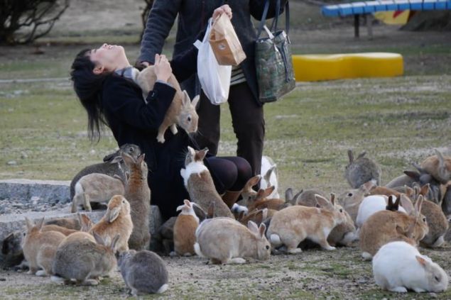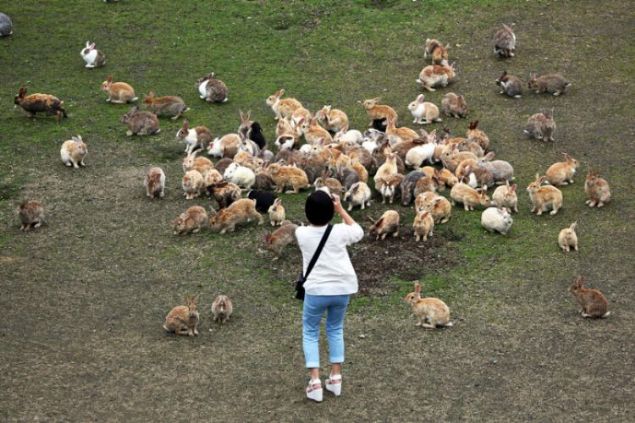 Japon denizindeki Okunojima adasında binlerce tavşan yaşıyor