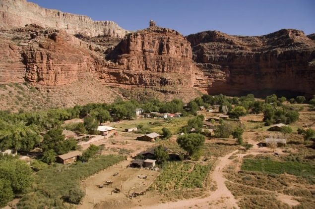 Supai kızılderili köyü, Büyük Kanyon'un güneybatı ucunda ve çok sarp kayalıkların dibinde yer alıyor. Köye ulaşım için helikopter kullanmak ya da kilometrelerce süren dağ yolunu aşmak gerekiyor.