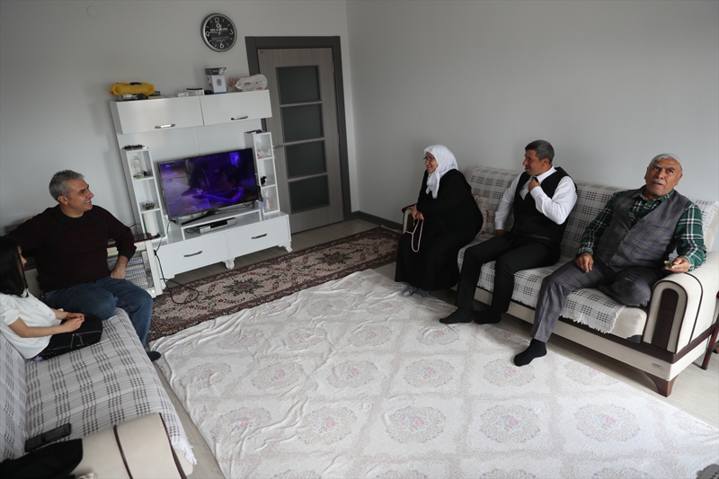 Depremde Mevlana Halit Mahallesi'ndeki evleri ağır hasar gördüğü için yıkılan Kaya çifti, Ramazan Bayramı'nda misafirlerini yeni evinde ağırlıyor.