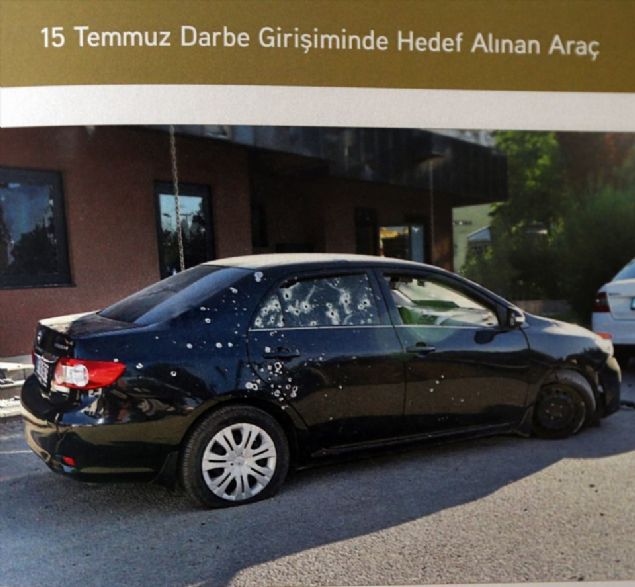 Öte yandan Fetullahçı Terör Örgütü'nün 15 Temmuz darbe girişimine karşı yürütülen operasyon sırasında, ateş altındaki MİT yerleşkesinde hedef alınan ve Kobra tipi helikopterden atılan 20 mm çapındaki harp başlıklı fişeklerin isabet ettiği araçlardan birinin de fotoğrafı paylaşıldı.