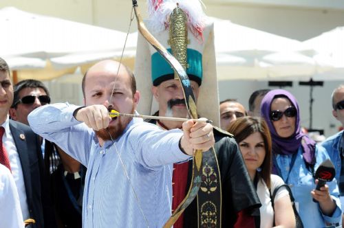 Okçular Vakfı tarafında ikincisi düzenlenen Fetih Kupası Müsabakaları’na katılan Başbakan Recep Tayyip Erdoğan’ın oğlu Bilal Erdoğan, ‘ya hak’ diyerek ok attı.