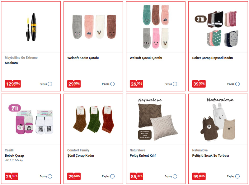 BİM'de bu hafta salı günü; Makyaj malzemeleri, yüz bakım ürünleri, Pelüşlu sıcak su torbası, bebek ve kadın çorapları, vücut spreyleri gibi onlarca çeşit ürün yer alıyor. İşte aktüel ürünler kataloğundaki ürünler ve fiyatları