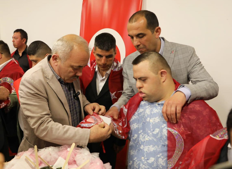Daha sonra Çiçek çifti, engellilerin avuçlarına askerlik kınası sürdü. Etkinliğe, Vali Yardımcısı Yakup Papaker, İl Emniyet Müdürü Gökalp Şener, İl Jandarma Komutanı Albay Ramazan Yiğit, ilgili kurum amirleri ve diğer ilgililer katıldı.