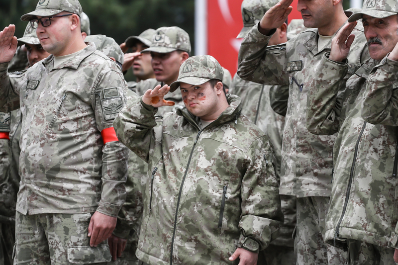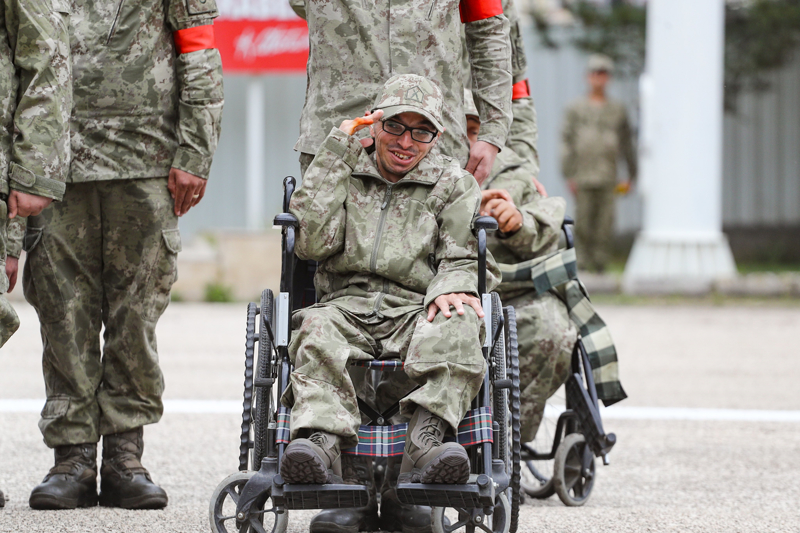 Sakarya'da Engelliler Haftası kapsamında düzenlenen törenle 1 günlüğüne asker olan 47 engelli, kamuflaj giyip yemin etti.