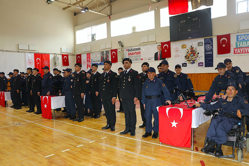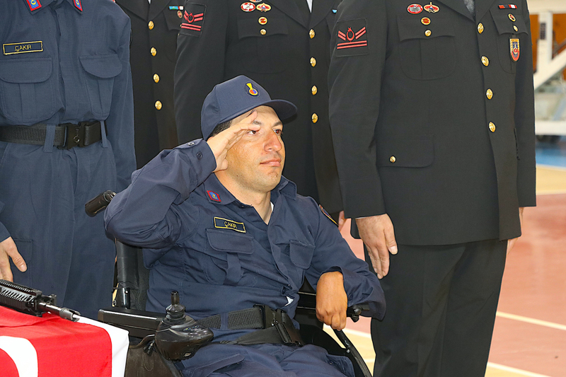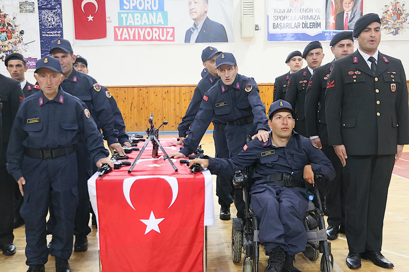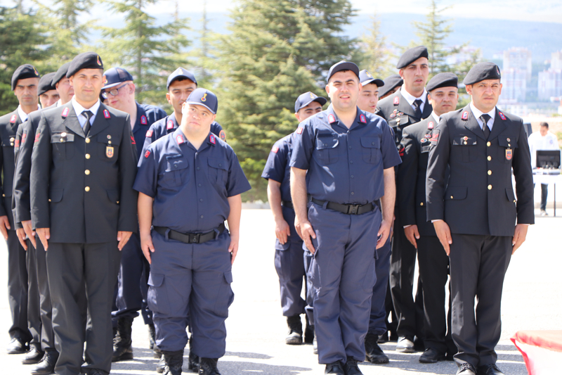 İl Jandarma Komutanlığınca kapalı spor salonunda askerlik yapamayan engelli bireyler için 'Temsili Askerlik Uygulaması' kapsamında yemin töreni düzenlendi.