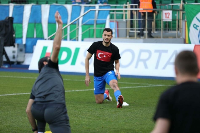 Öte yandan, Çaykur Rizespor oyuncuları ısınmaya da üzerinde Türk bayrağı olan tişörtler giyerek çıktı.