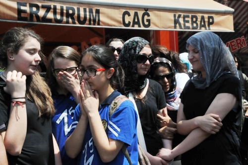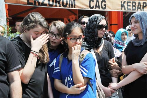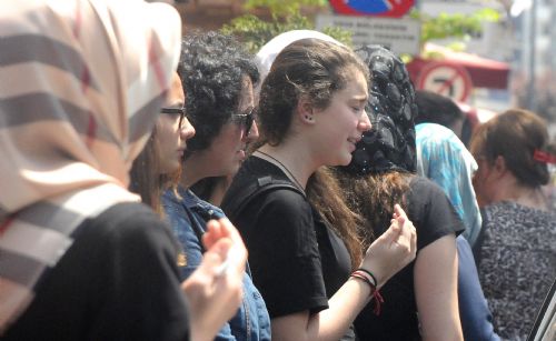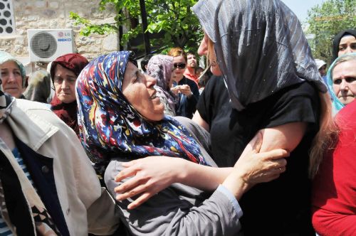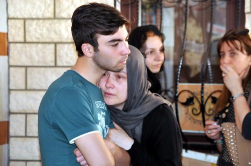 Törende gözyaşlarını tutamayan talihsiz kadının babası Hüseyin Camgöz'ü, yakınları sakinleştirdi.