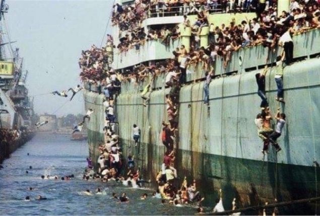 Zorunlu göçe tabi tutulan Bulgaristan Türklerinin trenden iniş anı... Yıl:1989