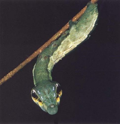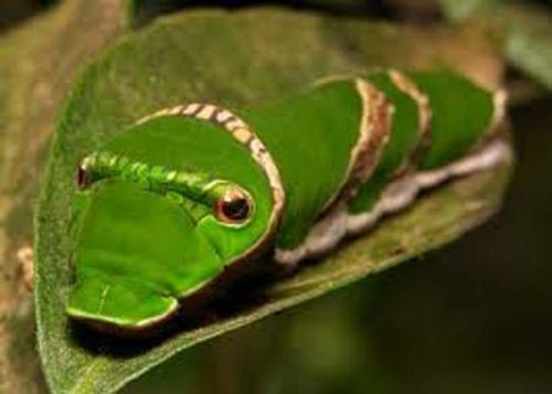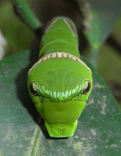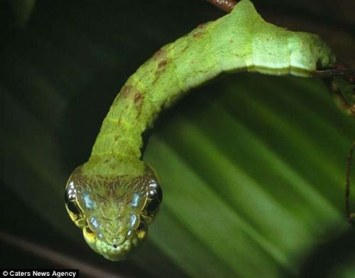 Doğuştan başı yılan başına benzeyen tırtılların hemen hemen her renkte çeşitleri bulunuyor...