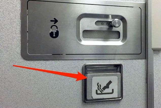 Uyarı sistemine rağmen tuvalette sigara içmeye kalkan yolcular için kül tablasının bulunması havacılık otoriteleri tarafından şart konuluyor.