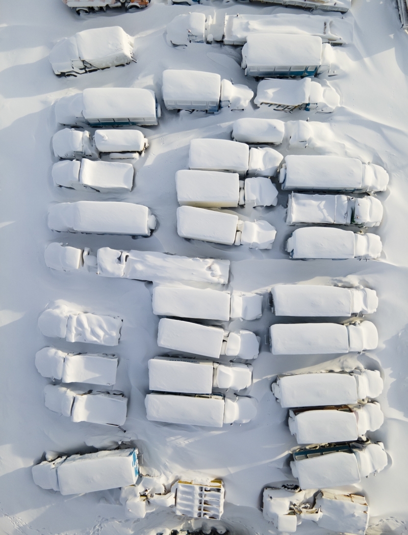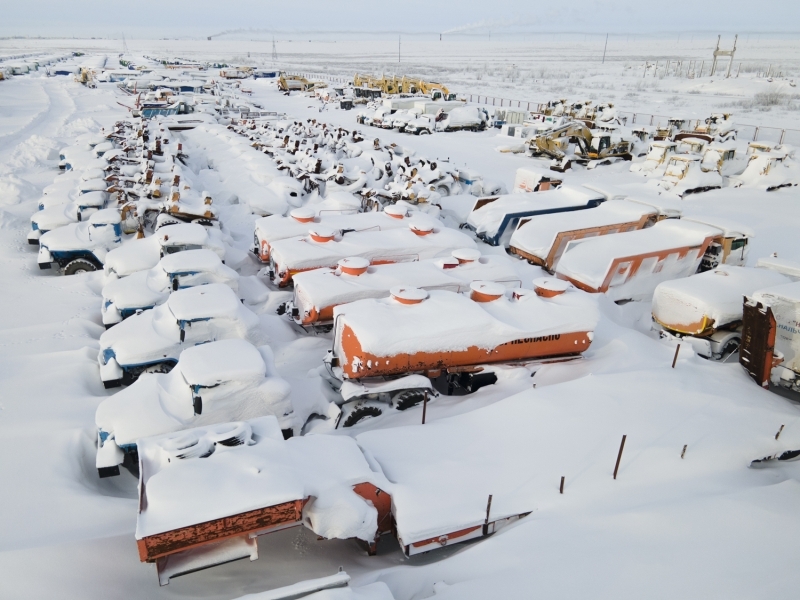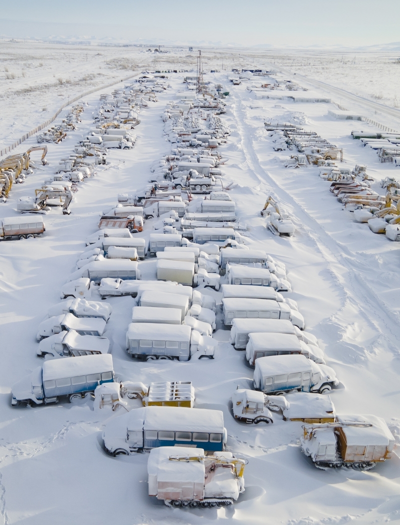 Vorkuta kent merkezine 19 kilometre uzaklıkta Sementnozavodsky bölgesinde de terk edilen apartmanların dairelerinin içi ve dış yüzeyi, katları, merdivenleri ve posta kutularına kadar her noktası buzla kaplandı.