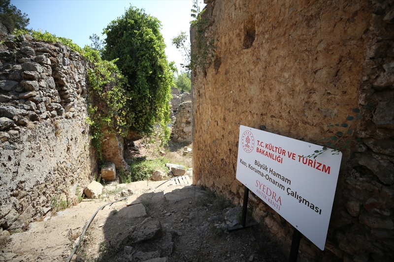 Antalya'nın Alanya ilçesinde 5 yıldır sürdürülen kazı çalışmalarıyla görünür hale getirilen Syedra Antik Kenti'nde, antik dönem yürüyüş güzergahı ortaya çıkarılarak turizmin hizmetine sunulacak.