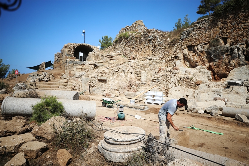 Syedra'daki ilk çalışmaların 1994-1999 yıllarında sütunlu caddede başladığını anlatan Ergürer, 5 yıl önce kendilerinin de sütunlu cadde ve hamam merkezli çalışmaya başladıklarını aktardı.