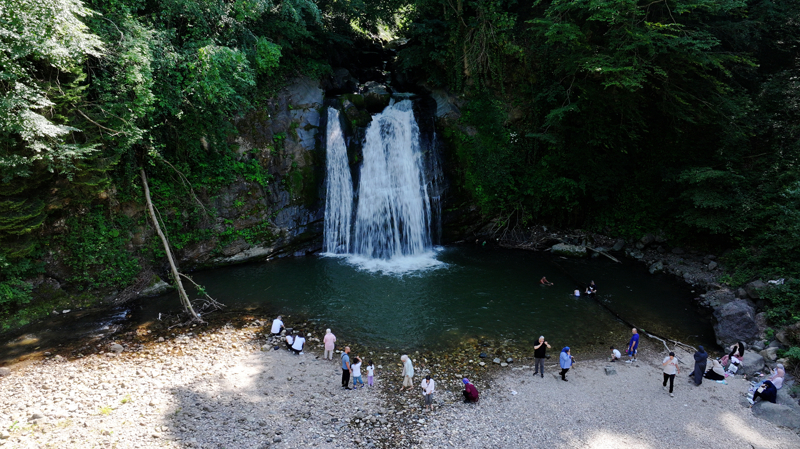 İlçe merkezine 800 metre uzaklıktaki Kaleönü Mahallesi'ndeki şelale, yaz aylarında yeşilin farklı tonlarını barındıran yapısıyla doğa tutkunlarını cezbediyor.