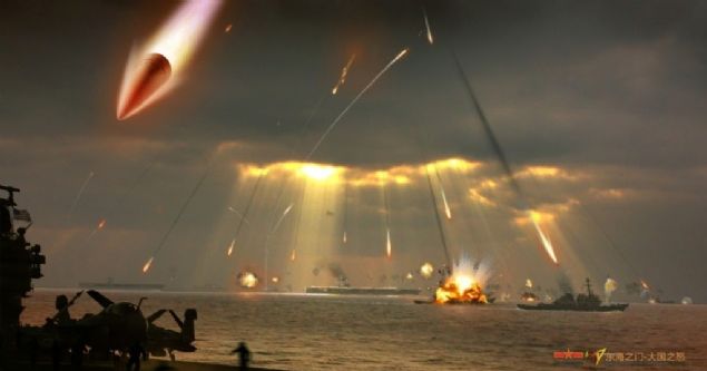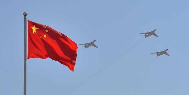 Görüntülerde Çin'in H-6K bombardıman uçağından bırakılan bomba, büyük bir patlama ile hedefi imha etti.