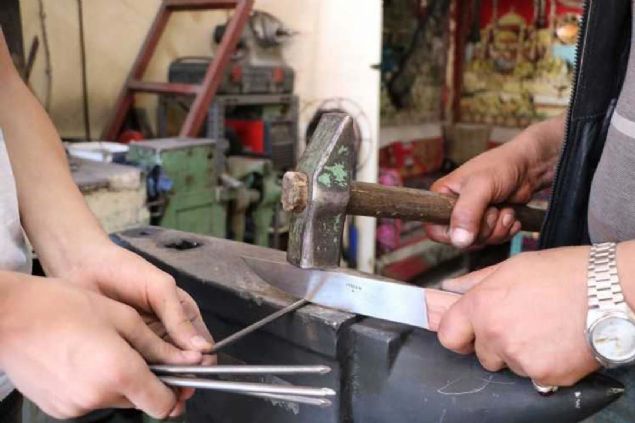 'Çivi kestiğimiz bıçakları makas çeliğini döverek yaparız. Çelik olarak araç makası kullanıyoruz...