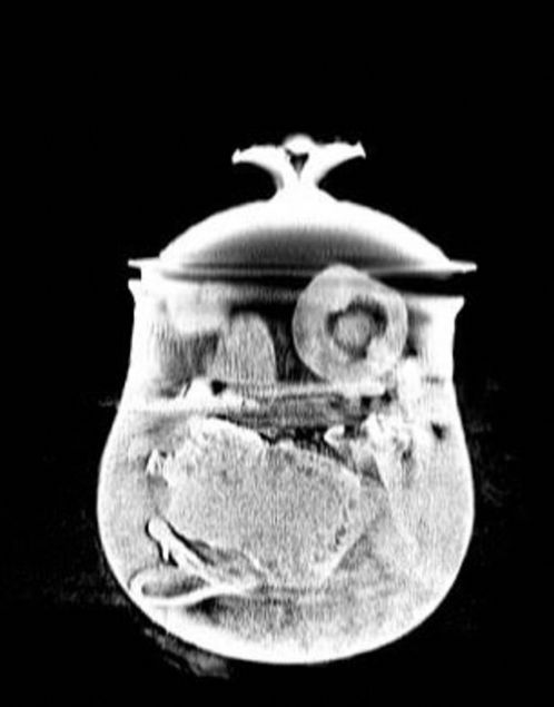 Kutuda bir insana ait olduğu tahmin edilen ceset kalıntıları ve bazı değerli eşyalar buldular.