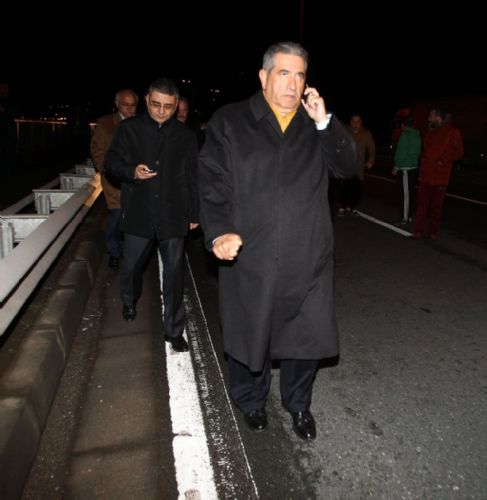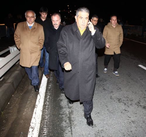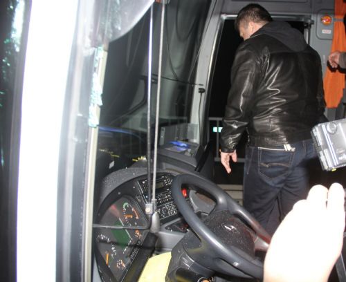 Camdan gelen parçaların yüzüne gelmesi sonucu yaralanan otobüs şoförü, kontrolünü kaybetti ancak araçta bulunan güvenlik görevlileri hemen direksiyonu tutarak otobüsün viyadükten uçmasını engelledi.