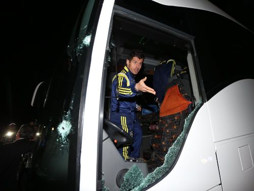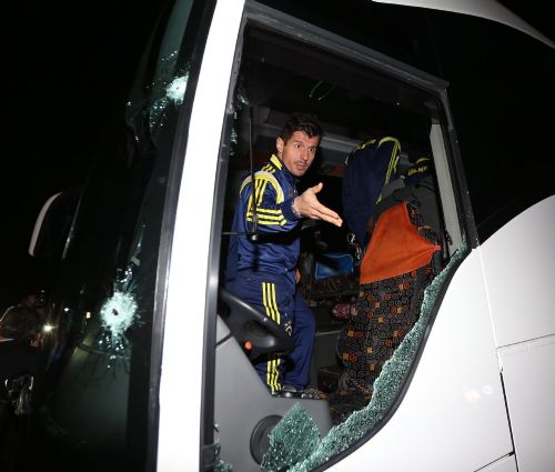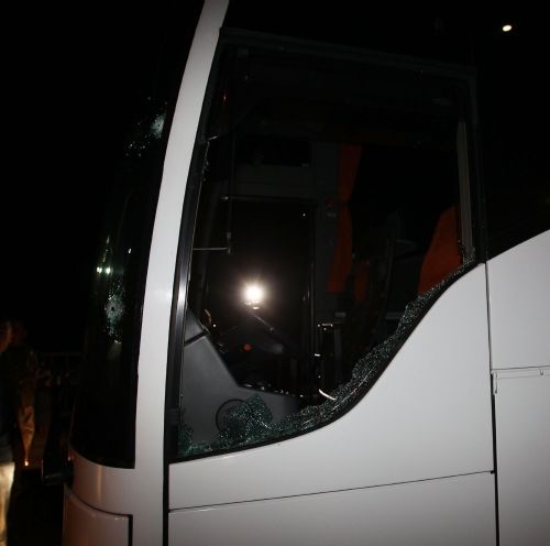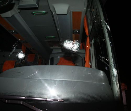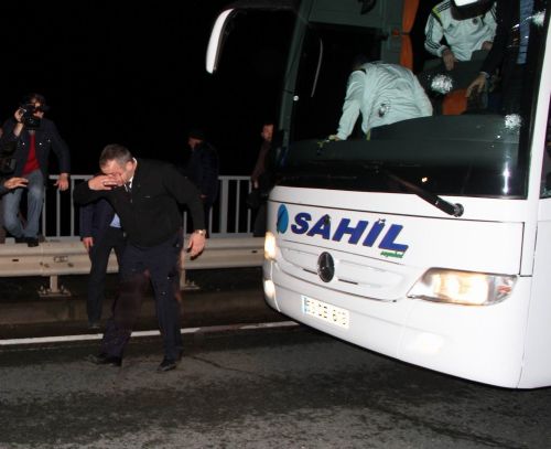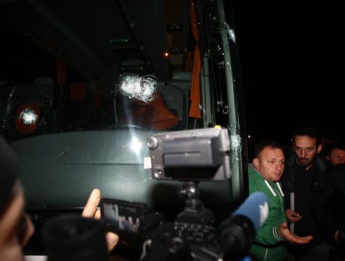 Saldırıda otobüsün şoförü yaralanırken, araç içinde bulunan futbolcu ve yöneticiler büyük şans eseri yara almadı.