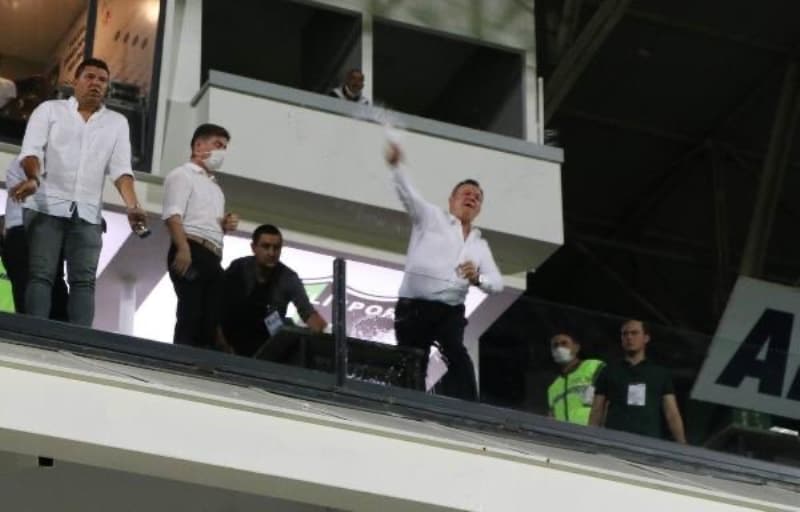 Buna tepki gösteren Denizlispor Başkanı Ali Çetin sahaya su şişesi fırlattı.