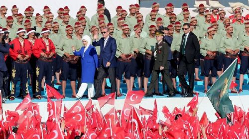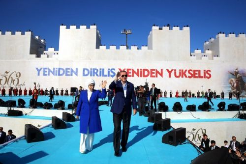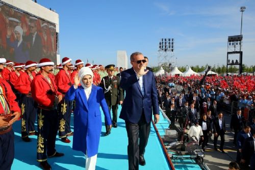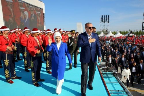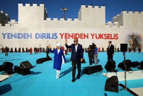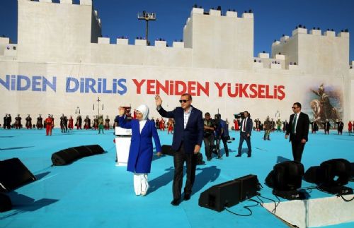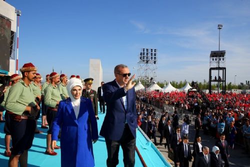 Devlet Marşı ile karşılanan Cumhurbaşkanı Erdoğan ve eşi Emine Erdoğan platformdan vatandaşları selamladı.