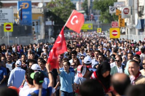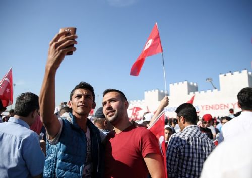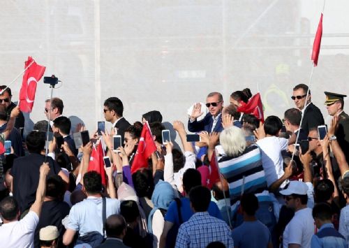 Saat 17.00 sularında Yenikapı Miting Alanı tamamen dolarken, Erdoğan ve Yıldırım'ın gelmesiyle kalabalığın coşkusu daha da arttı.