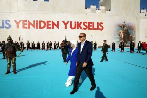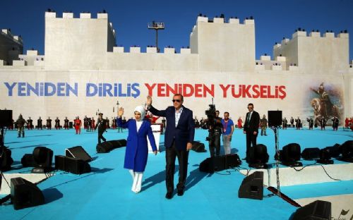 ERDOĞAN'IN GELİŞİNDE DEV PANKART AÇILDI