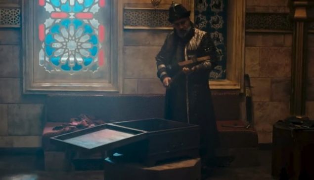 Sandığın kimden geldiğini düşünenler daha önceki bölümde bildiğimiz gibi Karacahisar Kalesi'nin ele geçirilmesinin ardından Ertuğrul Bey, Sultan Aleaddin'e fetih ganimeti olarak altın gönderecekti. Bu sahnede Emir Sadeddin, Ertuğrul Bey'in sandığı ile kendi tuzak kurduğu sandığı değiştiriyor.