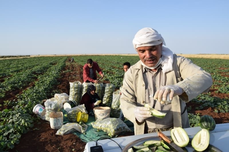 ilesiyle birlikte şelengo toplayan Aziz Kurek, “Nisan ayında ekimine başlıyoruz. Bir hafta, on gün sonra çapasını yapıyoruz. Etrafını temizliyoruz. Yaklaşık 45-50 günden sonra artık ürünler çıkmaya başlıyor. Bizim bu köy bölgesi çok eken bölgeler. Toprağından dolayı, kara kırmızı toprak rutubeti bırakmıyor. Biraz daha nemli. Susuz, organik, ilaç, katkı falan yok. Topladıktan sonra Diyarbakır, Mardin, Kızıltepe’den gelenler var. Onlara veriyoruz. Kalanları da şehre gönderiyoruz. Günde 5 ton ürün çıkabiliyor. Zahmeti çok, kazancı az” dedi.