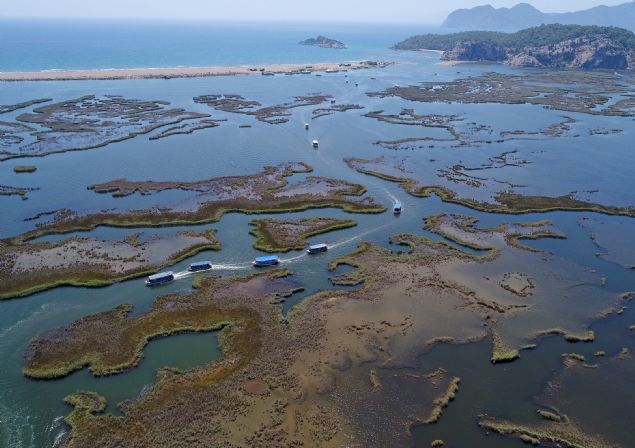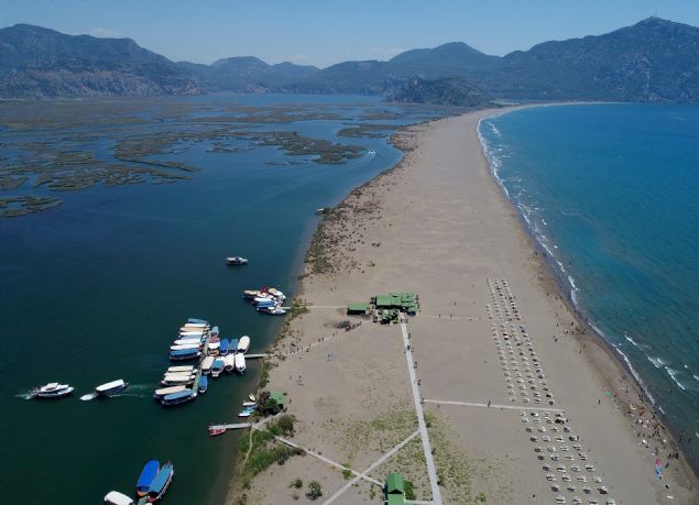 Dünyaca ünlü çamur banyolarına ve deniz kaplumbağalarının yuvası İztuzu sahiline gelen turistler, tekne turlarıyla bu güzelliklerin tadını çıkarıyor.