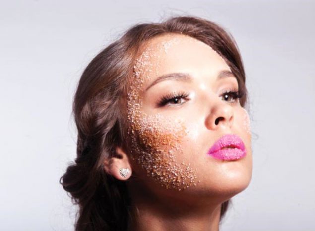 İkiye böldüğünüz domatesin şekere batırın ve dairesel hareketlerle yüzünüze sürün.
