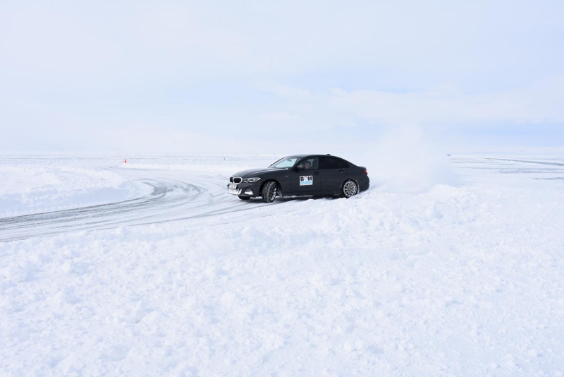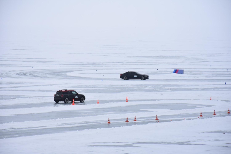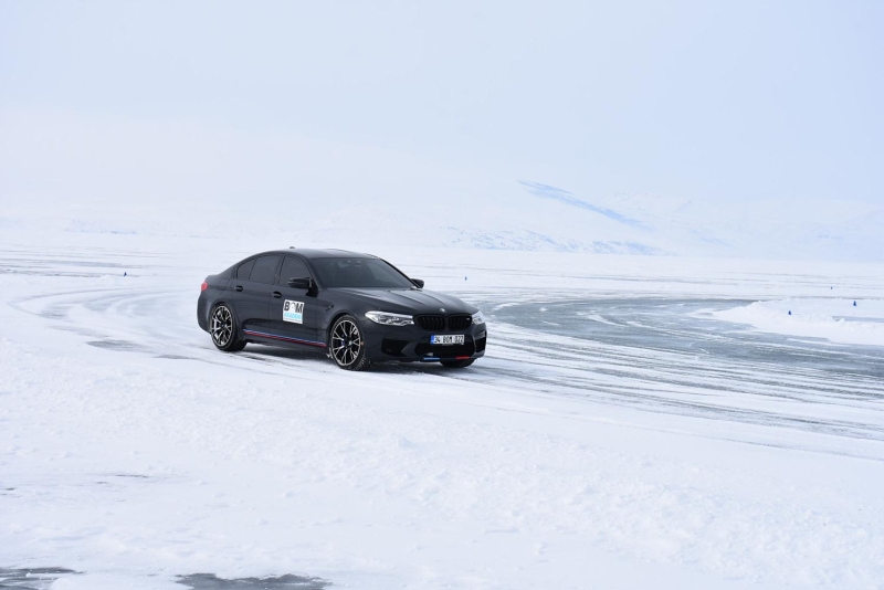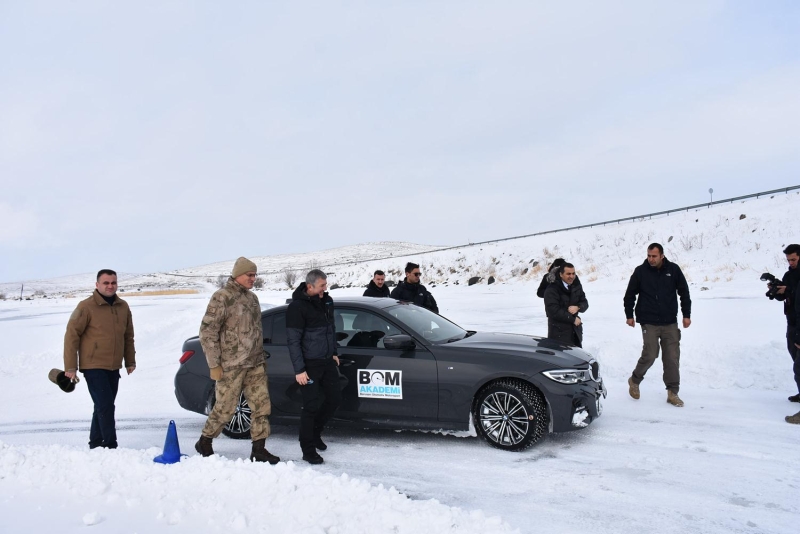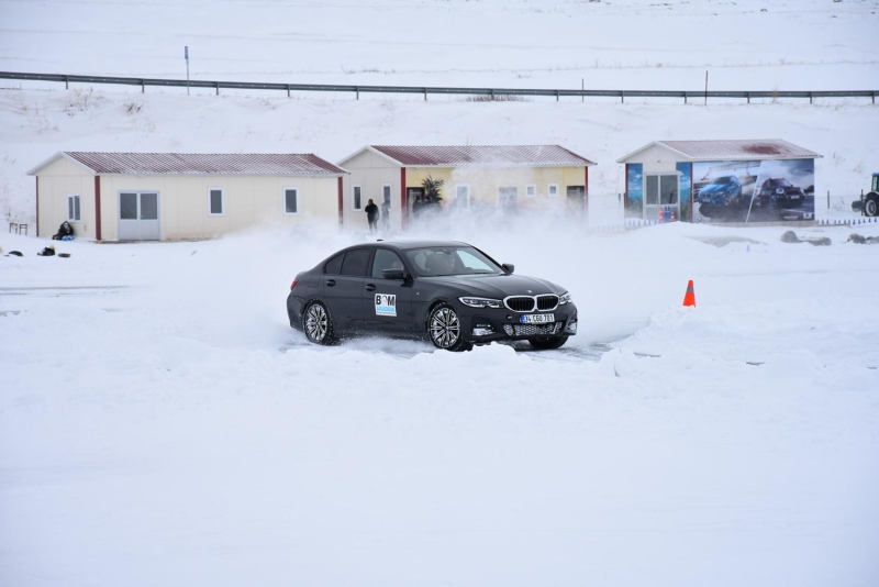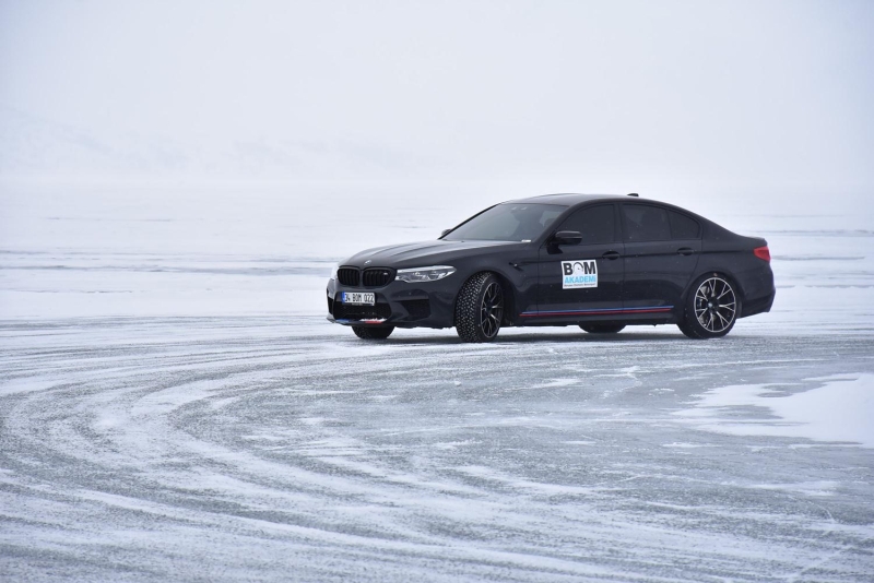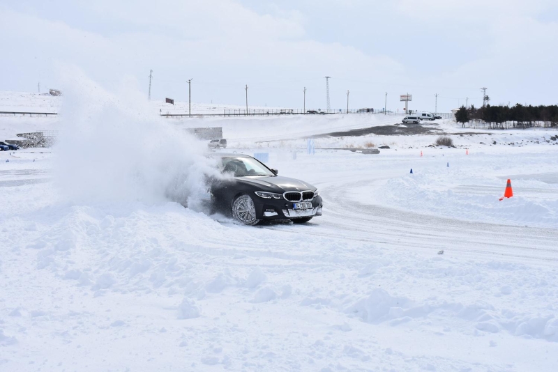 Türkiye'nin farklı yerlerinden bölgeye gelen sürücüler, uzman eğitmenlerce buz kalınlığının 50 santimetreye ulaştığı gölün üstünde oluşturulan parkurlarda eğitim aldı.