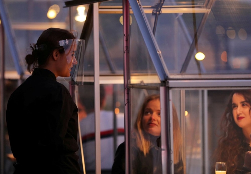 Uluslararası haber ajansı Reuters'in fotoğraflarını abonelerine servis ettiği habere göre, ETEN isimli restoranda garsonlar eldiven ve maske takarak hizmet veriyor.