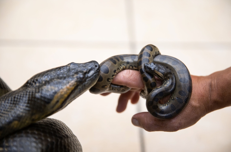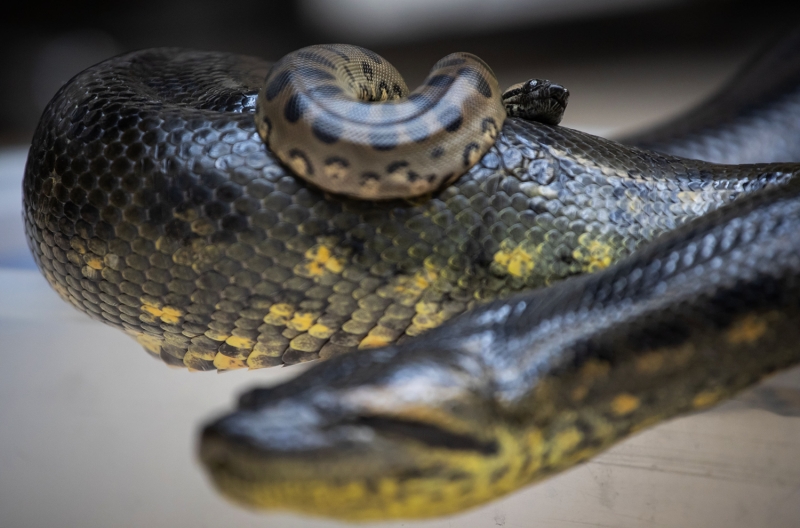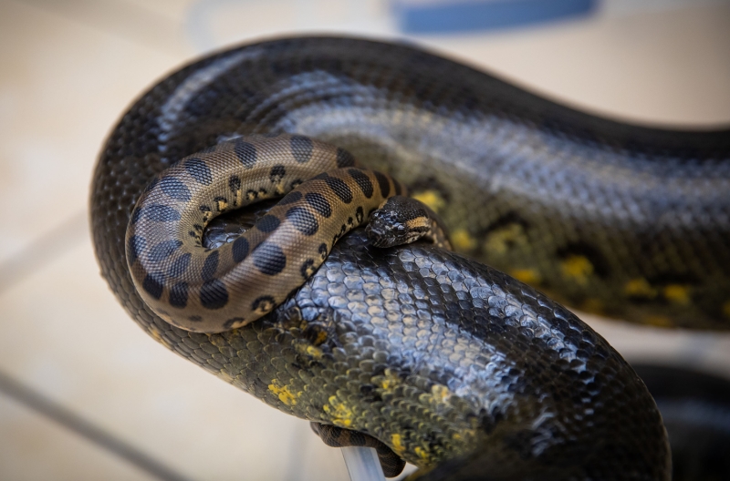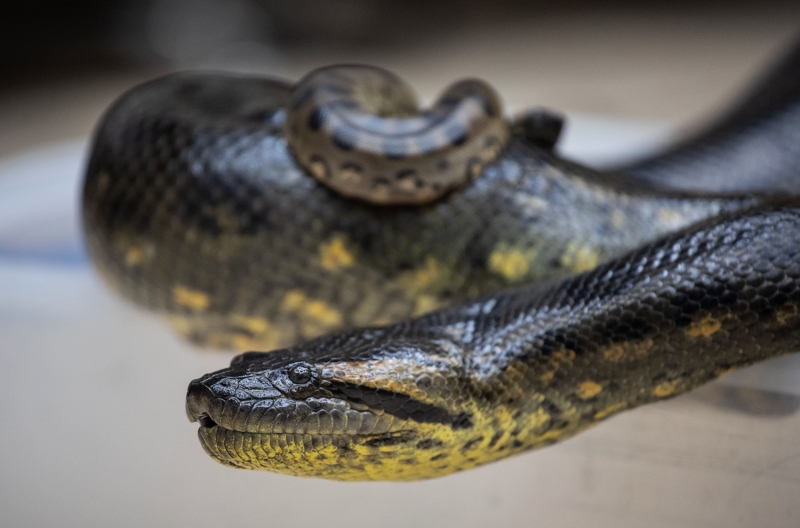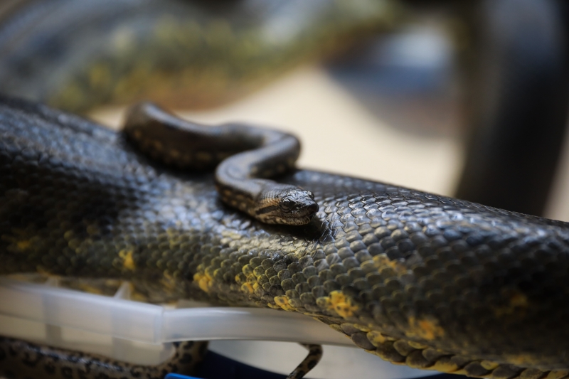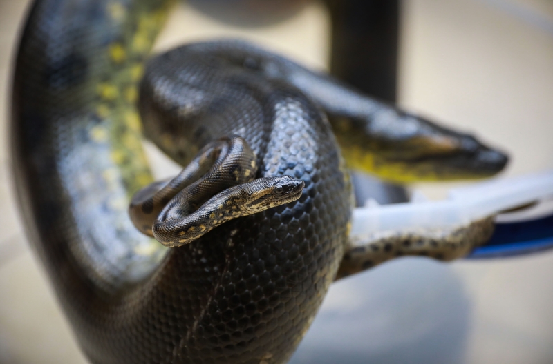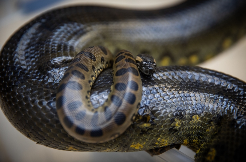 Dünyadaki en ağır yılan türü olarak bilinen yeşil anakonda, Meksika'nın başkenti Meksiko'da 19 yavru doğurdu.