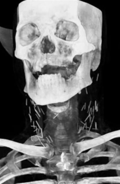 Bir eroin bağımlısının boynunda bulunan kırık iğneler