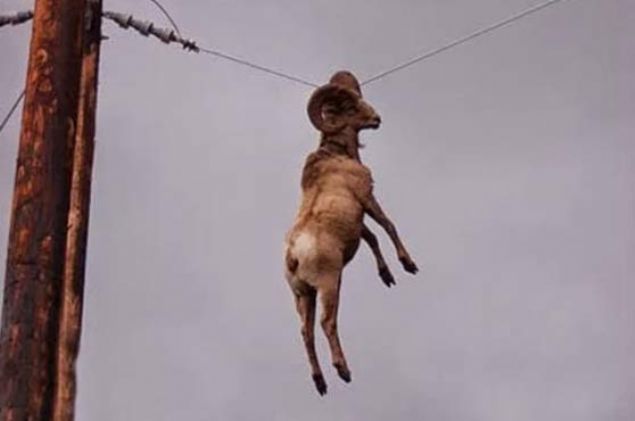 Ağaca takılı kalıp orada ölen Kanada geyiği.