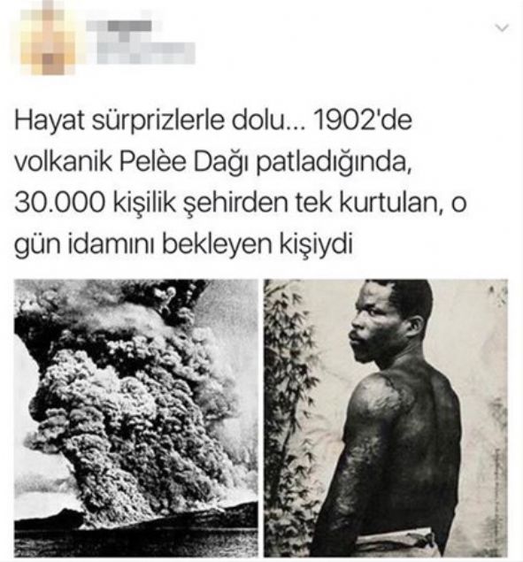Auguste Ciparis kötü bir şekilde yanmıştı, hücresi molozla dolmuştu ve üç gün boyunca kurtarma ekiplerinin gelmesini beklemişti. Ciparis'in, beyaz bir Fransız'ı öldürmek suçundan ölüm cezasına çarptırılmış bir siyah olduğu anlaşılıyor. 8 Mayıs günü asılacaktı, yani, patlama günü. Şehrin içinde kurtulmayı başaran tek kişi, bir idam mahkumuydu.
