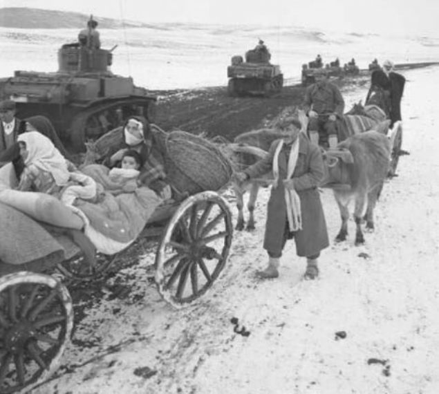 Stalin'in Kars'ı istemesi üzerine Türk tankları Sovyet sınırına doğru ilerliyor. Aralık, 1948.