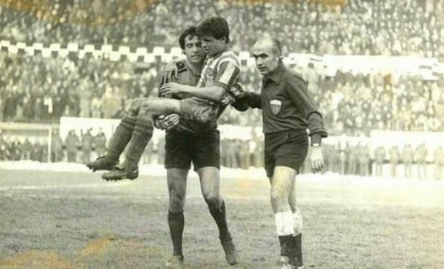 Beşiktaş kalecisi Rasim Kara, sakatlanan Fenerbahçeli Verel'i saha dışına taşırken.
