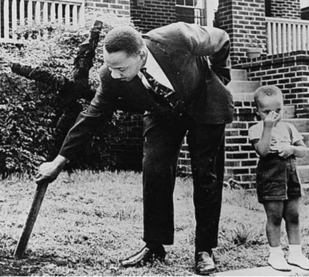 Martin Luther King Jr. ırkçılar tarafından gece bahçesine saplanıp yakılmış hacı yerinden sökerken.