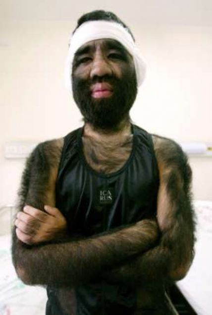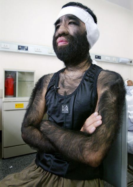 Çin'in kuzeyindeki Liaoning bölgesinde yaşayan 40 yaşındaki Yu Zhenhuan'ın hormon bozukluğu yüzünden vücudunun yüzde 96'sı kıllarla kaplı.