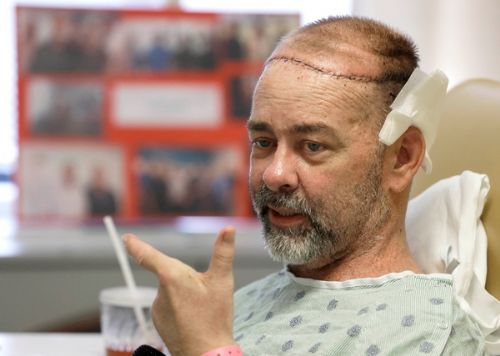 Doktorlar, gördüğü kanser tedavisi nedeniyle kafasında kapanmayan büyük bir yara bulunan 55 yaşındaki Jim Boysen isimli hastaya 22 Mayıs'ta kısmi kafatası ve kafa derisi nakli yapıldığını duyurdu.