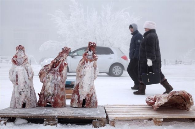 Dondurucu soğuğa rağmen Yakutsk’ta hayat durmuyor. Okullar ve resmi kurumlar sıcaklık eksi 52 derecenin altına inmediği sürece tatil edilmiyor.